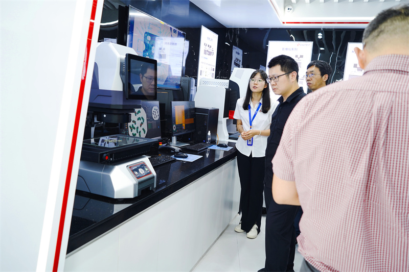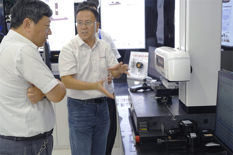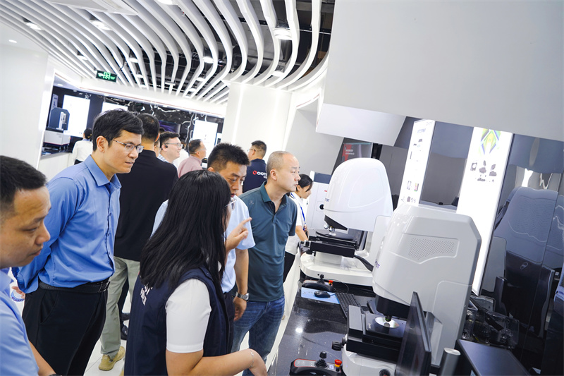 当天下午,与会代表们移步至中图仪器展厅进行参观交流。作为国产自主化三坐标测量机的代表性企业,中图仪器向与会嘉宾全面展示了其在精密测量领域的最新研发成果与高端制造实力。展厅内陈列的高性能三坐标测量机、激光跟踪仪、非球面检测轮廓仪、AI影像仪、闪测仪、白光干涉仪等核心产品,其卓越的测量精度、稳定的性能表现以及先进的软件系统,给参观者留下了深刻印象。