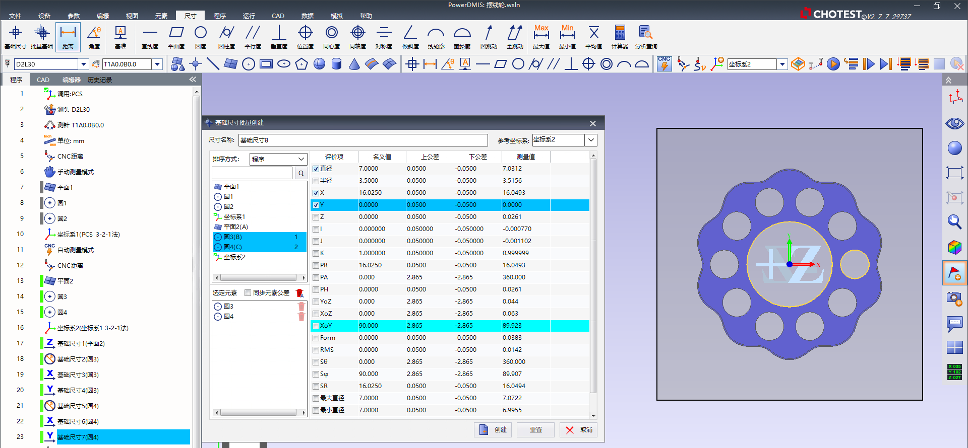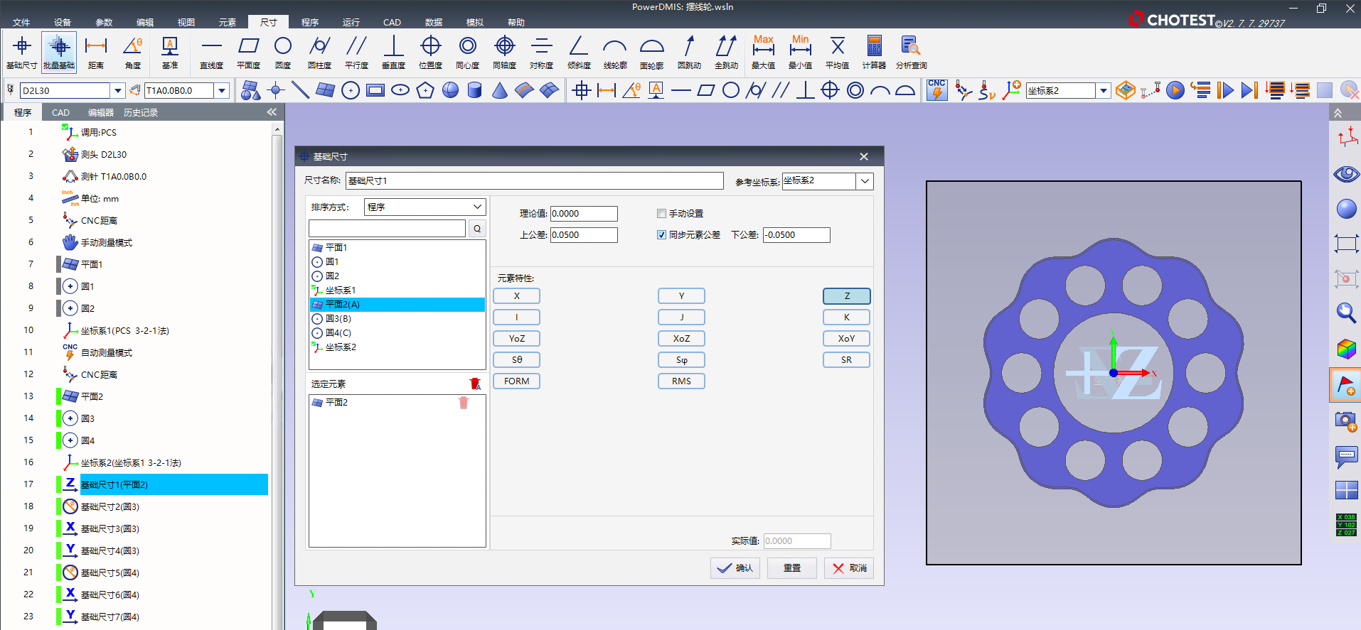(2)兼容DMIS与I++标准协议,并通过德国PTB双认证(最小二乘法和最小区域法)。该软件全面支持ISO 1101:2017及ASME Y14.5-1:2019最新标准,具备强大的GD&T分析能力。搭载扫描测头可实现高效精准测量,支持转台联动与高速连续采点,保障复杂曲面与微小零件测量质量。